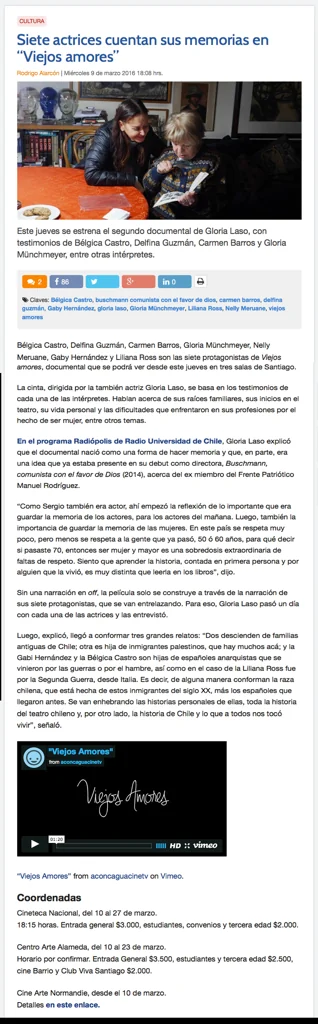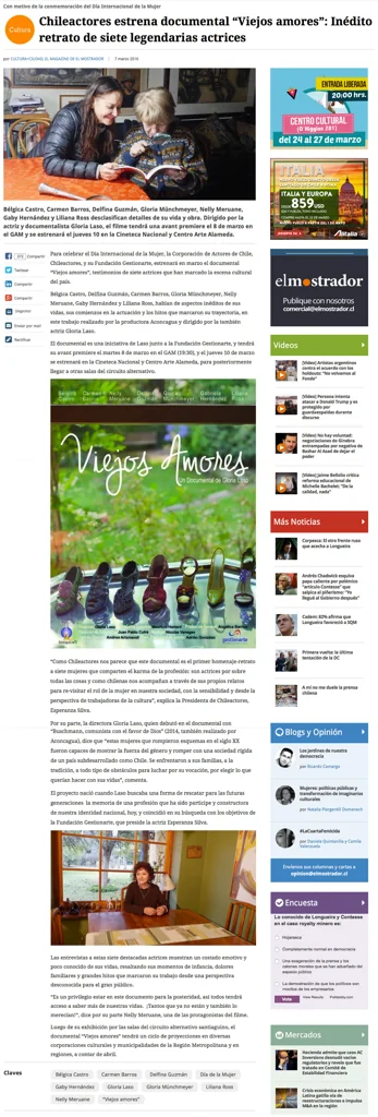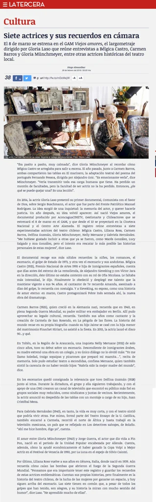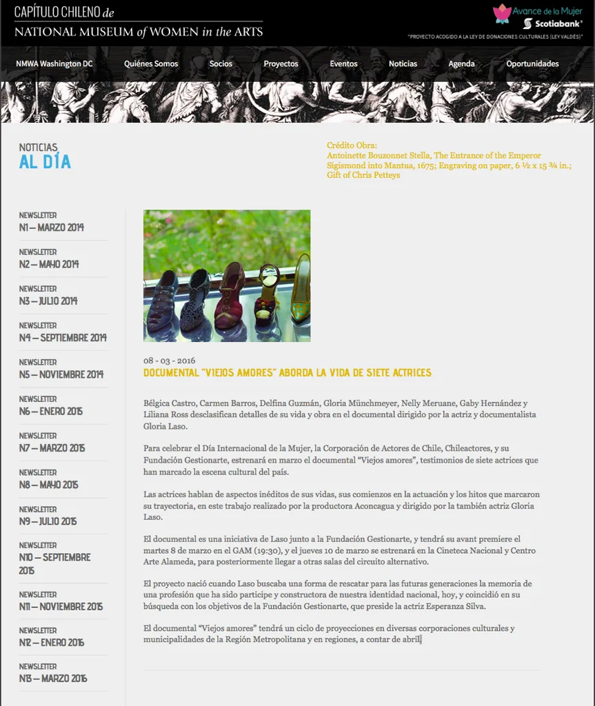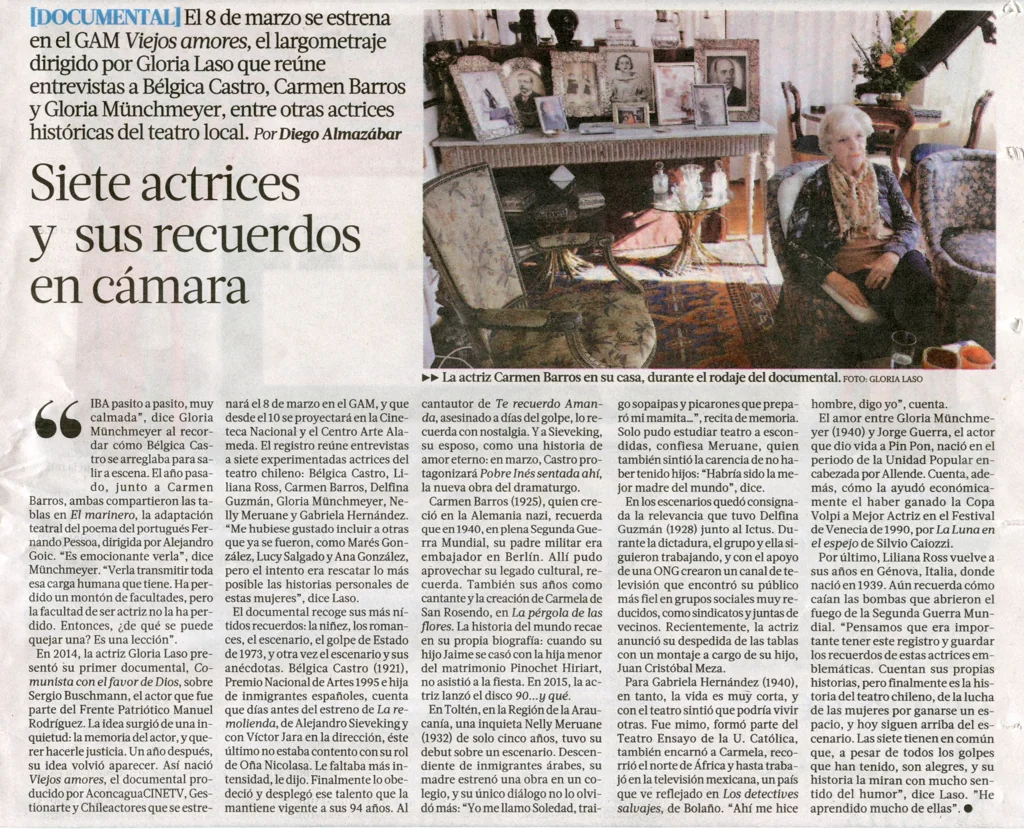 PROTAGONISTAS: Bélgica Castro, Carmen Barros, Delfina Guzmán, Gloria Münchmeyer, Nelly Meruane, Liliana Ross, Gabriela Hernández