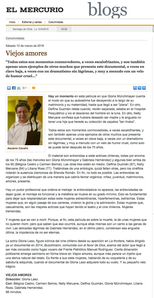 "Todos estos son momentos conmovedores, a veces escalofriantes, y son también apenas unos ejemplos de otros muchos que presenta este documental, a veces en clave baja, a veces con un dramatismo sin lágrimas, y muy a menudo con un velo de humor"
